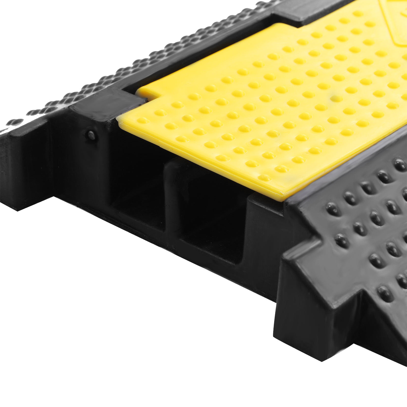Our great product the 2 channel cable protectors protects up to 2 cables, hoses, or wires from damage caused by heavy vehicle and industrial traffic. Ensure cable safety on roads with our reliable road cable protectors.